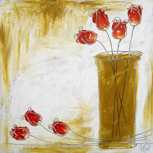 ID# 2147 | Arranging yellow tulips | Acrylic on canvas | 850 x 850 mm